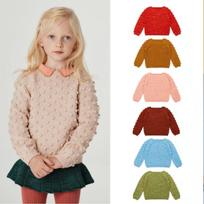 mp同款女童重工纯色爆米花毛衣秋冬新款儿童宝宝洋气...