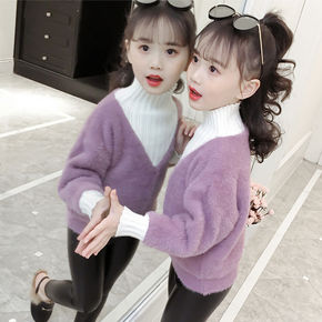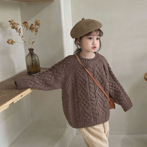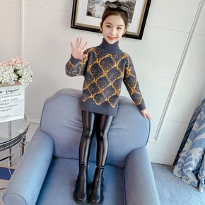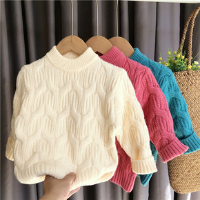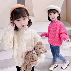 女童加厚毛衣套头2021秋冬装新款儿童装外套洋气大...