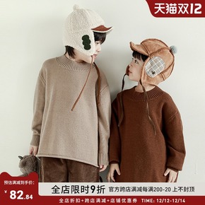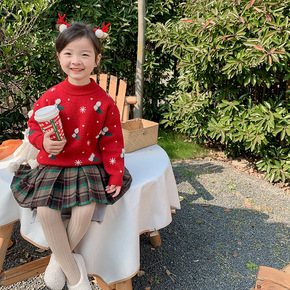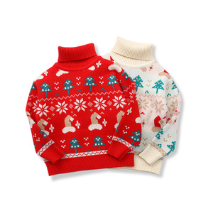 21冬季男女童童装宝宝圣诞节高领针织衫小童加绒加厚...