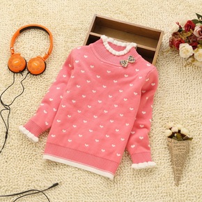 女童宝宝婴幼儿棉线套头衫 双层加厚毛衣 圆领提花秋...