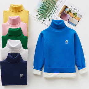 儿童白毛衣女童加绒加厚毛衣打底衫中小童加厚保暖长袖...