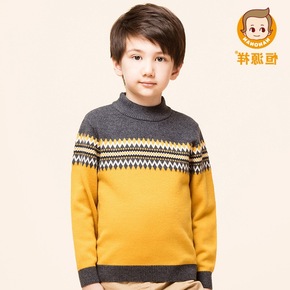 恒源祥羊毛衫男童半高领中大童装加厚无羊绒儿童毛衣针...