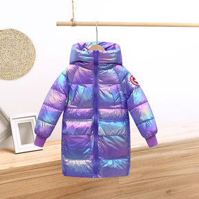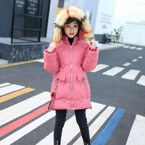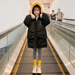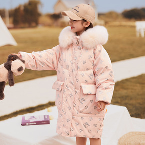 儿童羽绒服2021新款韩版女大童中长款加厚印花大毛...