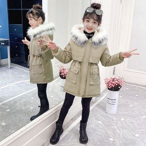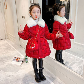 韩货女童棉衣2021新款中长款女孩洋气冬季棉服儿童...