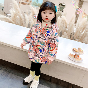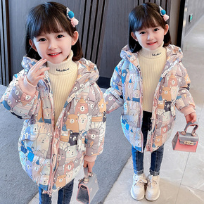 女童羽绒服2021冬季新款中小童卡通涂鸦韩版中长款...