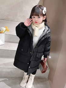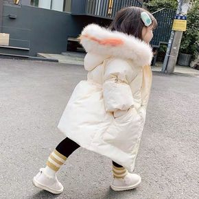2021新款儿童中长款羽绒服韩版纯色女童外套加厚连...