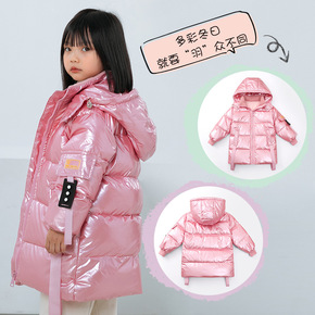 新款巴拉儿童羽绒服女童洋气中大童装中长款加厚亮面免...