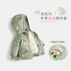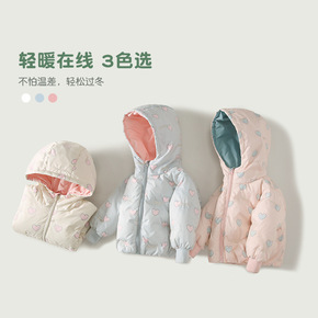 女童大口袋连帽羽绒服2021冬季新款韩版中小童宝宝...