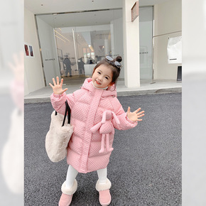 女宝宝中长款棉衣潮岁洋气小童冬装加厚棉服女童羽绒棉...