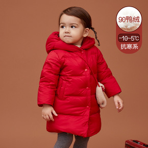 儿童羽绒服2021冬季新年款红色周岁宝宝中长款羽绒...