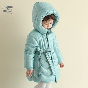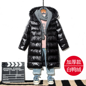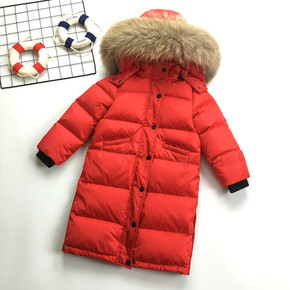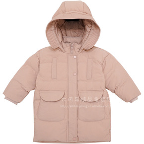 鸭绒羽绒服中长款儿童连帽厚款批发跨境白韩版外套羽绒...