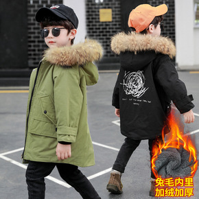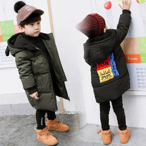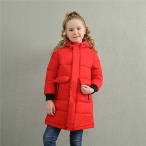 140cm儿童中长款加厚羽绒服 涤纶微弹派克服保暖...