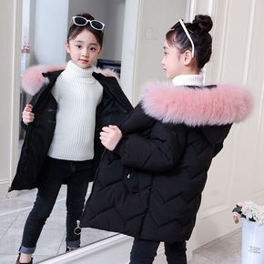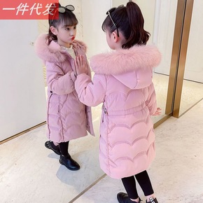 儿童棉衣服女童中长款冬装加厚女大童童装2018新款...