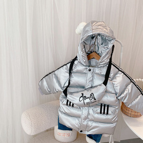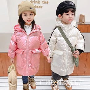 新款白鸭绒儿童羽绒服男童女童免洗亮面中小童加厚连帽...