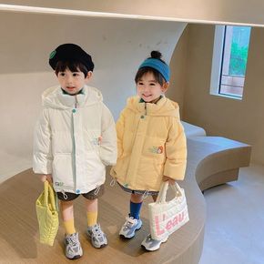 风之谷2021冬季新款童装儿童中长款纯色立领棉服男...