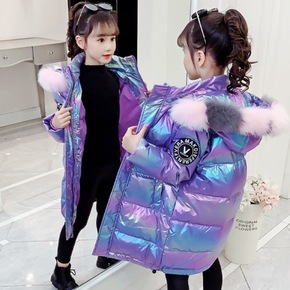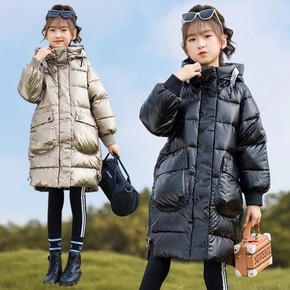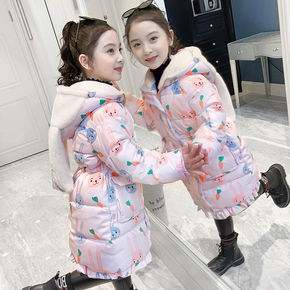新款潮中大童中长款棉袄2021女童冬季外套小女孩韩...