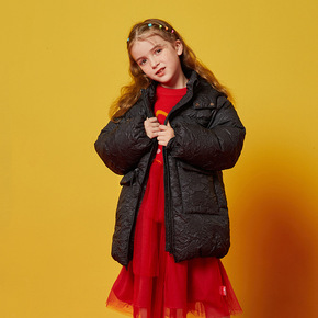 丫逗童装21冬季新款女中大童羽绒服保暖暗纹印花羽绒...