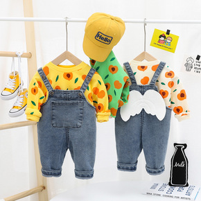 2684春秋新款韩版男女童套装 宝宝圆领翅膀牛仔背...