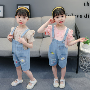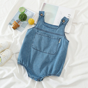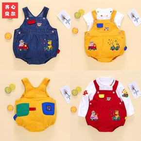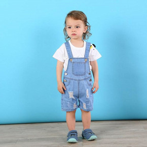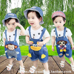 0婴幼儿童装夏装1岁男宝宝背带牛仔裤套装帅气2夏季...