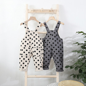 热销童装2021冬款儿童背带裤夹棉0-3岁宝宝全棉...