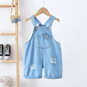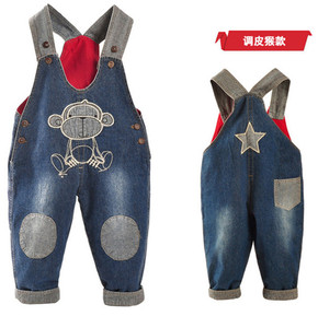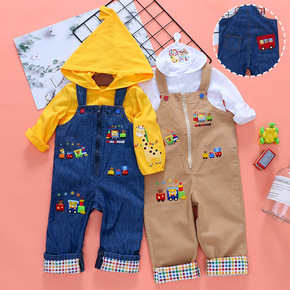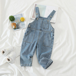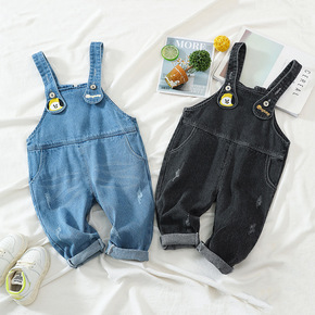 童装外贸秋季新品儿童牛仔背带裤男童外出背带长裤批发...