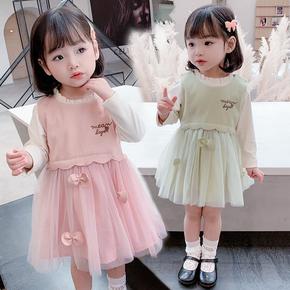 韩国童装女童法式蝴蝶结长袖公主裙2021儿童秋装洋...