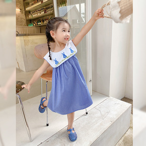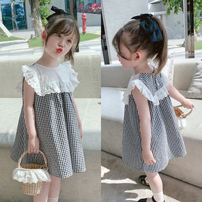 2021夏季新款童装女童卡通连衣裙儿童洋气格子裙宝...
