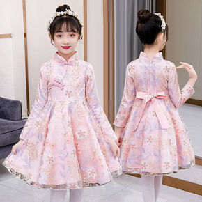 女童连衣裙中式裙子2021新款儿童秋装旗袍长袖洋气...