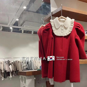 高端女童连衣裙冬季女童毛呢外套小女孩圣诞节甜美公主...