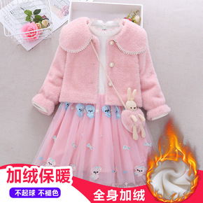 女童毛呢裙套装小女孩公主裙2021新款四季可穿可爱...