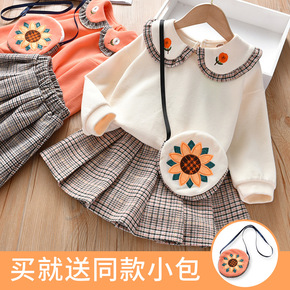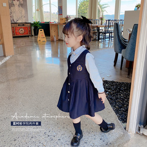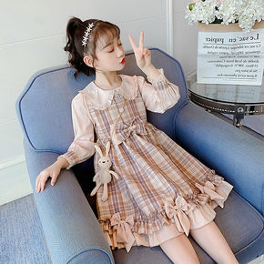 2021秋装新款女童连衣裙套装洋气儿童宝宝韩版学院...
