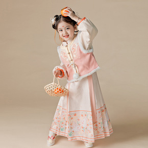 2021年冬装新款女童套装汉服百褶裙半身裙加绒加厚...