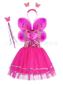 2021跨境爆款儿童万圣节花仙子蝴蝶翅膀吊带连衣裙...
