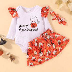 现货万圣节服装 骷髅黑色城堡派对演出裙子 儿童吊带...