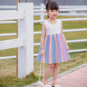 2020童装夏季新款彩虹裙女童连衣裙 背心纱裙儿童...