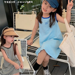 夏季女童连衣裙宝宝网红洋气儿童个性潮牌韩版字母条纹...
