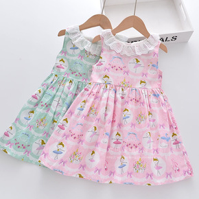 2022新款儿童裙子春夏女童宫廷印花吊带裙欧美宝宝...