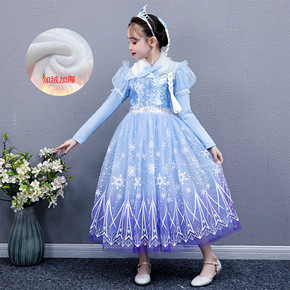 长袖秋冬加绒冰雪奇缘2爱莎公主裙万圣节爱纱女童连衣...