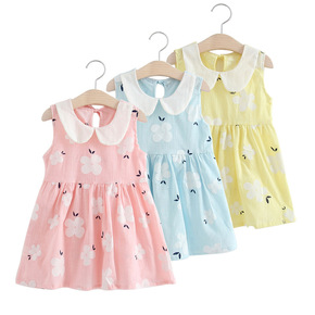 现货 2021棉女童夏新款童裙 娃娃领背心裙儿童公...