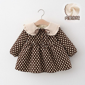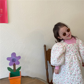 21冬 橙乐韩版女童碎花纱布菱格夹棉连衣裙 女童方...