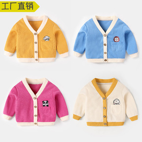 春季儿童毛衣开衫男女宝宝糖果色卡通毛衣开衫单排扣女...