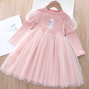 儿童连衣裙白雪公主女童针织毛衣裙长款内搭网纱女童秋...