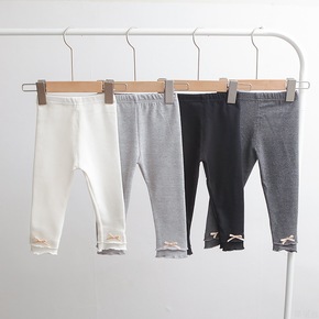 夏款韩版纯棉童裤男女童休闲打底裤提花网眼拉条防蚊裤...