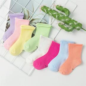 日式童袜糖果色儿童袜基础款卷边夏网眼透气中筒宝宝袜...
