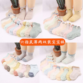 满包邮六指鼠春秋薄棉两双装宝宝袜夏透气镂空网眼婴儿...
