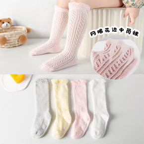 韩版春秋儿童袜子移圈镂空中小童中筒袜婴儿宝宝网眼防...