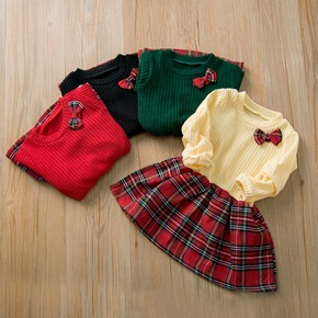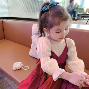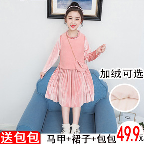 童装女童连衣裙套装秋冬儿童公主裙小女孩毛呢格子背心...