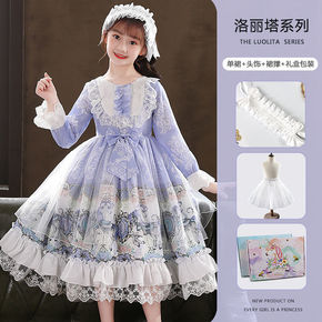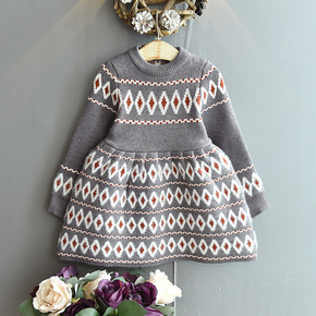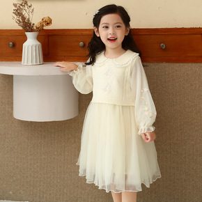 童装2021秋装小香风连衣裙洋气名媛民族长袖弹力修...