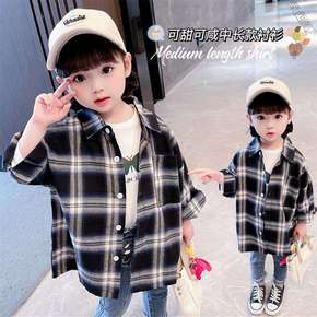 女童长袖衬衫2022春秋新款女宝宝秋装洋气格子衬衣...
