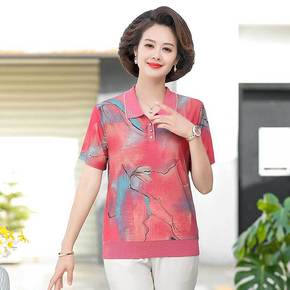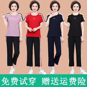 减龄妈妈装夏装套装洋气中年女装短袖T恤九分裤中老年...